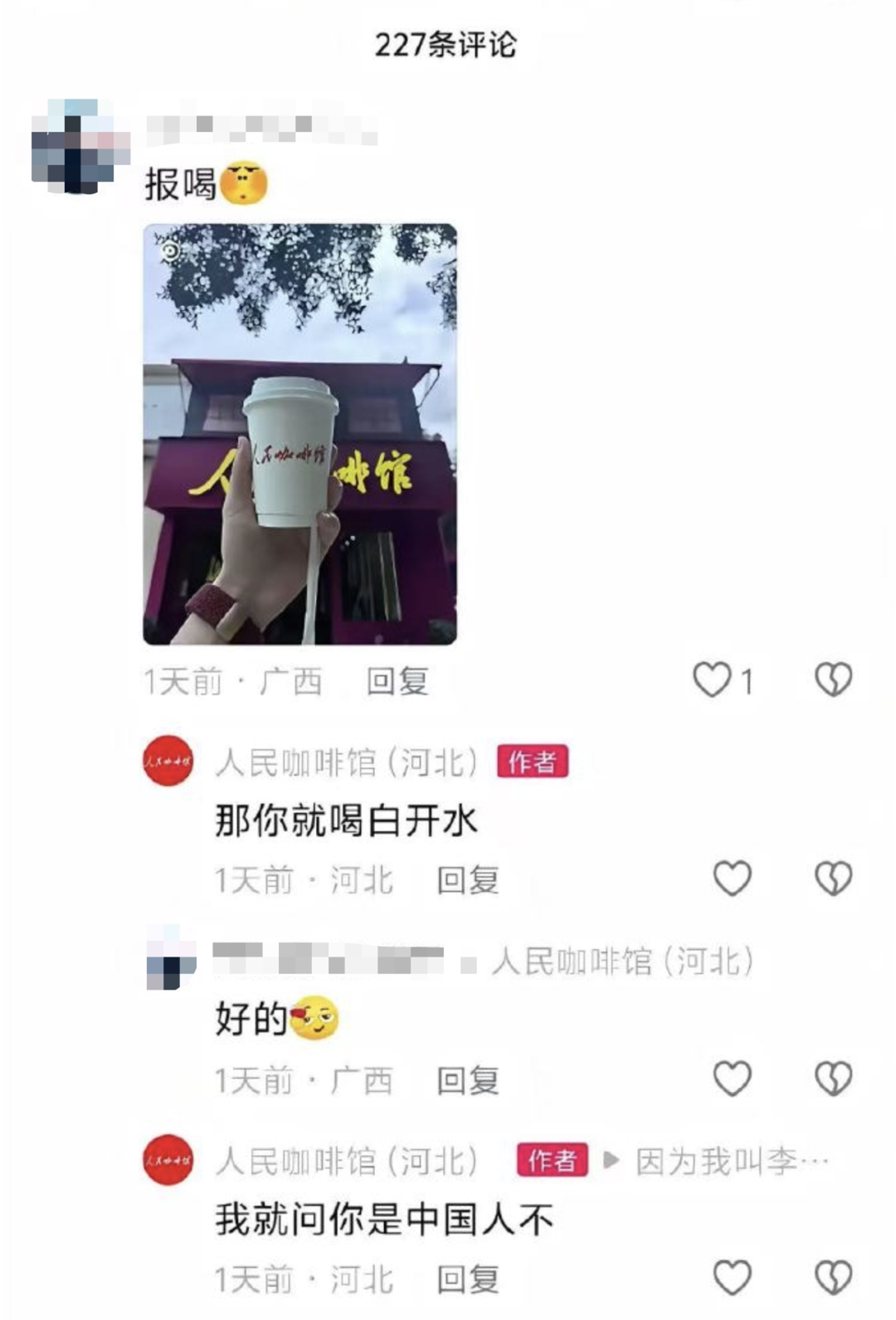 11月7日,人民网发表评论《“人民咖啡馆”,不妥!》直指其问题本质:“人民”是公共情感符号,承载国家叙事,不应被商业过度消费。评论认为,该品牌存在消费爱国情怀、模糊企业与公共机构边界、以情怀替代价值等问题,容易使公共情绪被商业化透支。